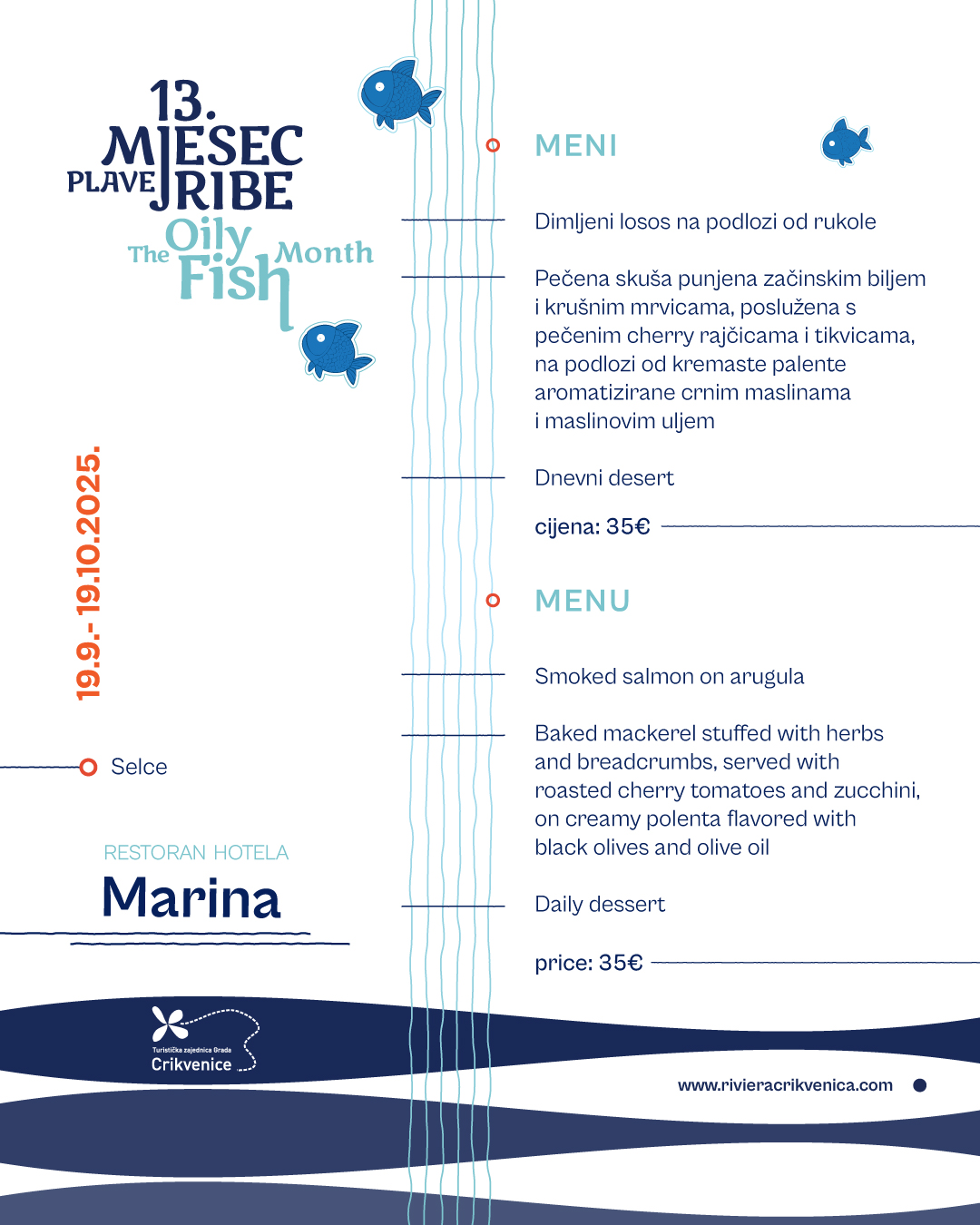 13. mjesec plave ribe donosi Vam još jedan ukusni menu u 3 slijeda s plavom ribom u glavnoj ulozi.